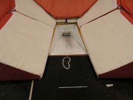 Next, have them stand at the foot outline and put the tip of the pole in the circle and reach up to get a standing grip.