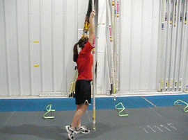 This drill is a series of little drills that I use to get Jr. Hi. kids and beginners vaulting in the pit, over a bar (bungie) on the very first day they show up. It’s easy and it’s safe and starts laying in some of the basics of the vault.