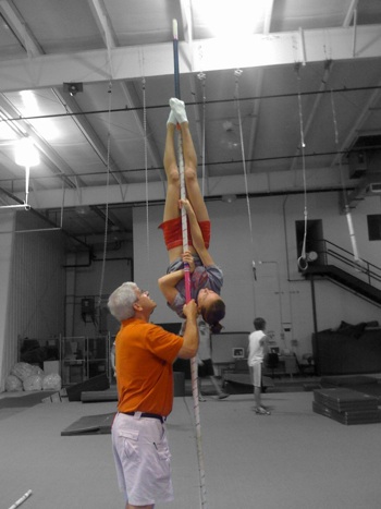 When you get the little stuff under control, have your vaulter swing up and touch the pole with their trail leg foot.