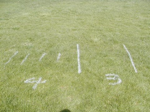 Note – I painted lines on the grass to layout the drill and give it direction.