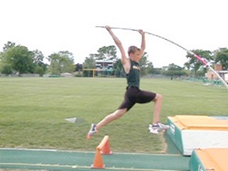 After they get used to jumping with the noodle in place they can jump the noodle using their regular pole that they use in competition.